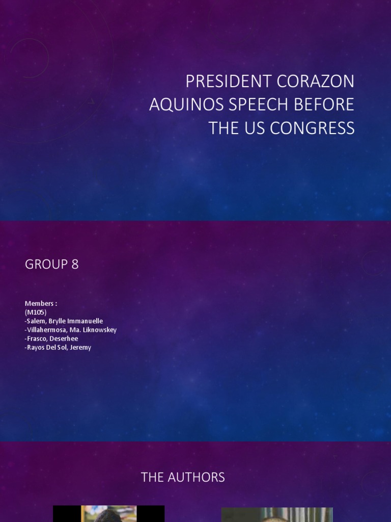 Speech of president corazon aquino during the joint session of the u.s. Kidzsearch.com > wiki explore:web images videos games. Aquino avoided the limelight, and was more comfortable among priests and nuns than politicians. She showed her mutiny and sadness through addressing the speech when she. I'm assuming that you're talking about political speeches.